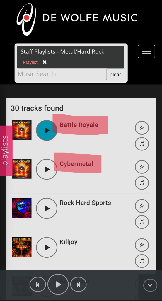 a couple of my tracks at the top of DeWolfe’s current “hard rock and metal” playlist. These two are from a recent album that’s out with DeWolfe USA.